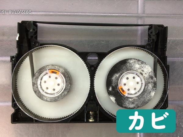 ビデオテープは湿度の高い環境に放置しておくとカビが発生します。カビはカビ取りの処置を行えばほとんどは再生が可能ですが、カビの浸食がすすんだテープはテープの表面の磁気がはがれてしまったり、癒着しテープが裂けて切れてしまうといった問題が発生してしまいます。