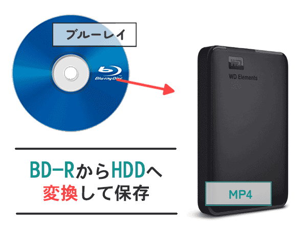 ブルーレイに記録されている映像をHDDへ保存するのがおすすめです。ただし、ブルーレイに記録されている映像はMPEG-2TS(H.264)形式で記録されておりますので、そのままドラックアンドドロップでHDDにコピーしても再生することが出来ません。PCなどで再生するにはMP4という形式に変換することで再生することができます。ファイル形式はAVI・MOVなど様々な形式がありますが MP4がファイルサイズも抑えられ再生互換性も高いためおすすめです。